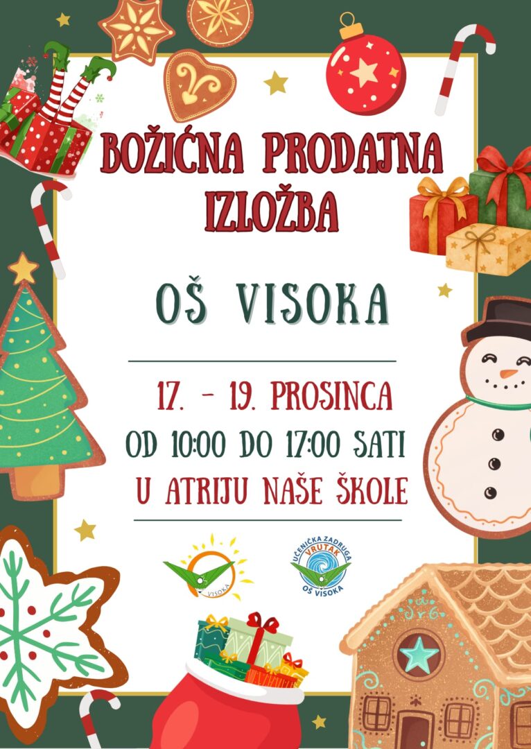 Pridružite nam se na prodajnoj izložbi koja će u našoj školi biti postavljena od srijede 17.12.2025. do petka 19.12.2025. od 10:00-17:00 sati u atriju škole i odaberite neke od brojnih veselih radova koje su učenici naše škole marljivo izrađivali kroz godinu. Svi ste dobrodošli!!!