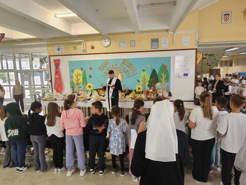 Tijekom mjeseca Listopada obilježavamo Dane kruha i zahvalnosti za sva dobra koja nam Bog daruje. U petak smo u našoj školi skromno, jednostavno ali srčano obilježili Dane kruha i zahvalnosti za sva primljena dobročinstva. Zahvaljujući marljivim rukama, sa stolova je mirisao kruh, krušni proizvodi, peciva i razne slastice. Sve to su slatko začinili naši najmlađi koji su zajedno sa svojim učiteljicama marljivo pripremali te krasnoslovili prigodne recitacije i igrokaze.