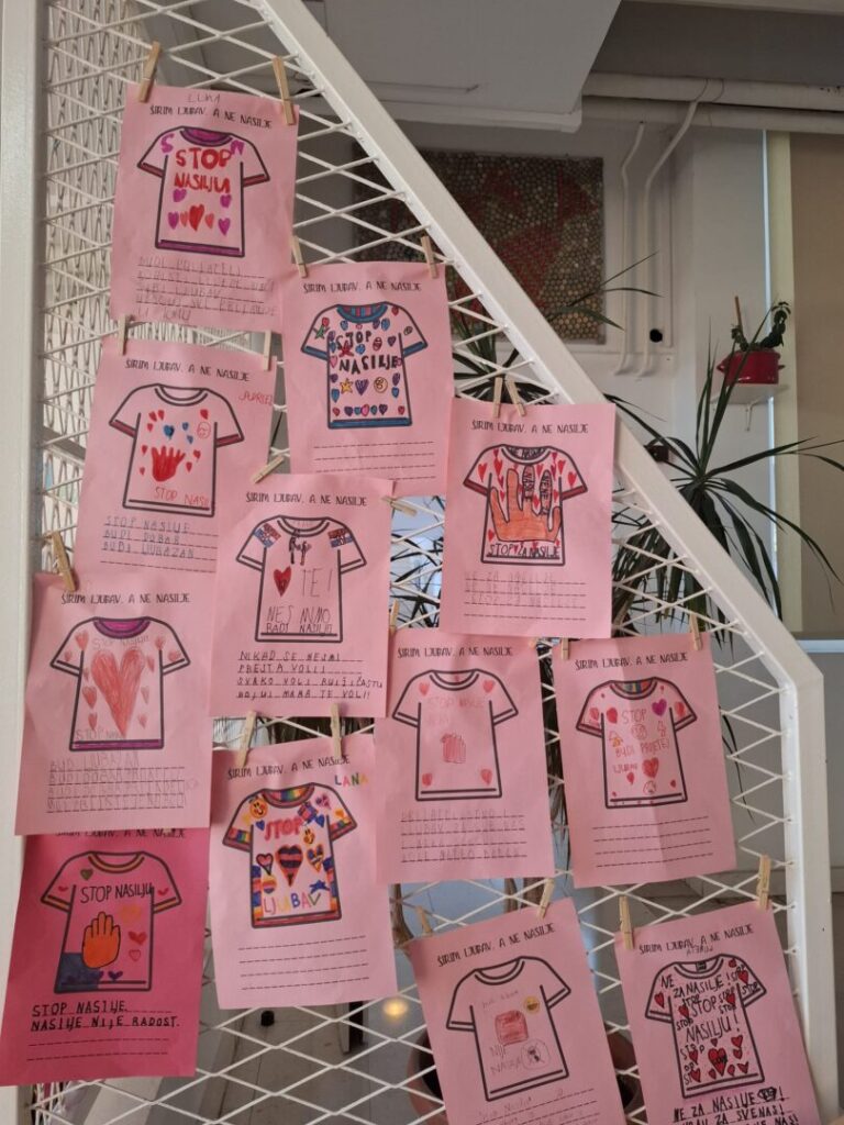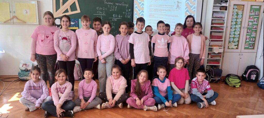 Danas smo u našoj školi obilježili Dan ružičastih majica, dan posvećen borbi protiv vršnjačkog nasilja. Obukli smo ružičaste majice kako bi pokazali podršku prijateljstvu, toleranciji i poštovanju među vršnjacima.