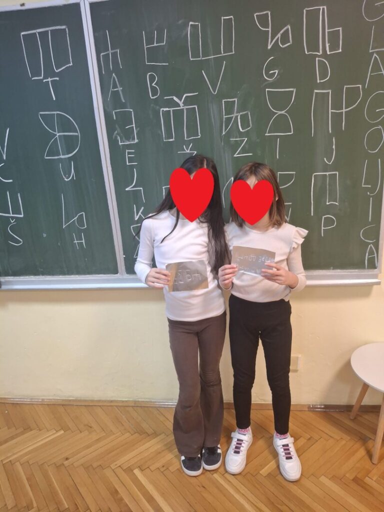 Na kraju smo se igrali glagoljicom, gdje su učenici oblikovali svoja imena u ovom pismu te se na taj način zabavili i naučili nešto novo.