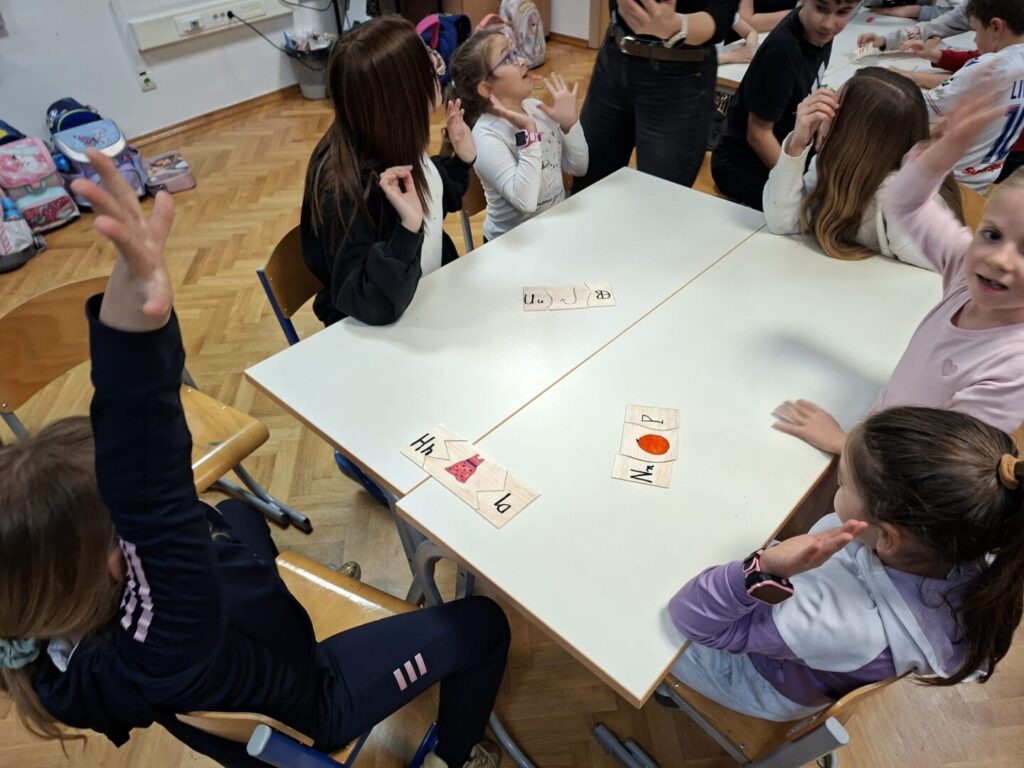 Daroviti Glagoljaši predstavili su učenicima 1. razreda edukativnu drvenu učilicu glagoljaške abecede – posebno osmišljenu kako bi im na zabavan, kreativan i interaktivan način približila jedno od najvrjednijih obilježja hrvatske kulturne baštine – glagoljično pismo.