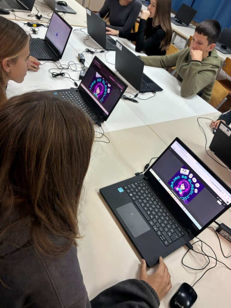 Uz mnogo zabave i smijeha kreirali su zanimljiva loga u digitalnom alatu Canva. Odabrali smo dva koja su nam se najviše svidjela da ih predstavimo partnerima u projektu.