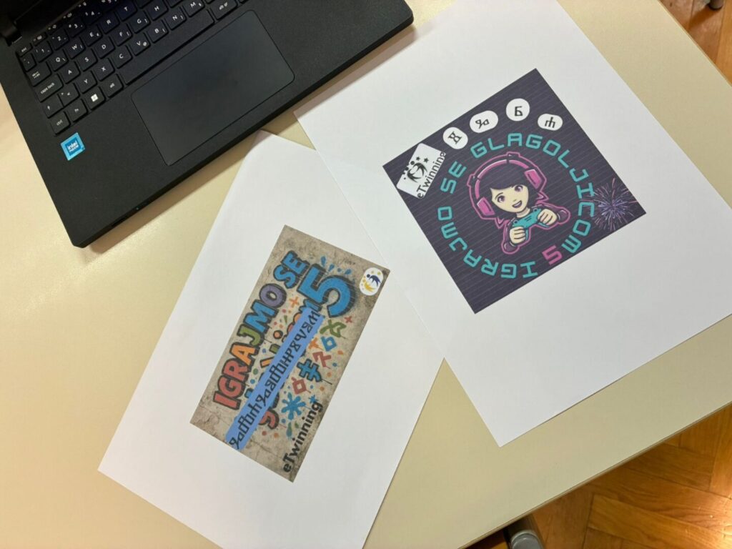 Logo za e-Twinning projekt „Igrajmo se glagoljicom 5“ izradili su zajedničkim snagama Glagoljicoljupci, učenici 6. i 8. razreda uključeni u projekt.