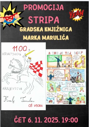 S velikim zadovoljstvom pozivamo vas na svečano predstavljanje almanaha stripova, nastalog kao rezultat kreativnog i edukativnog rada učenika Osnovne škole Visoka Split. Pod vodstvom učiteljice povijesti Zdenke Biliškov i učiteljice likovne kulture Katarine Kokan naši učenici izrazili su se kroz umjetnost stripa kako bi obilježili važnu 1100. obljetnicu postanka Hrvatskog kraljevstva.