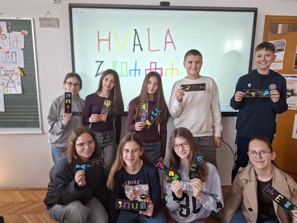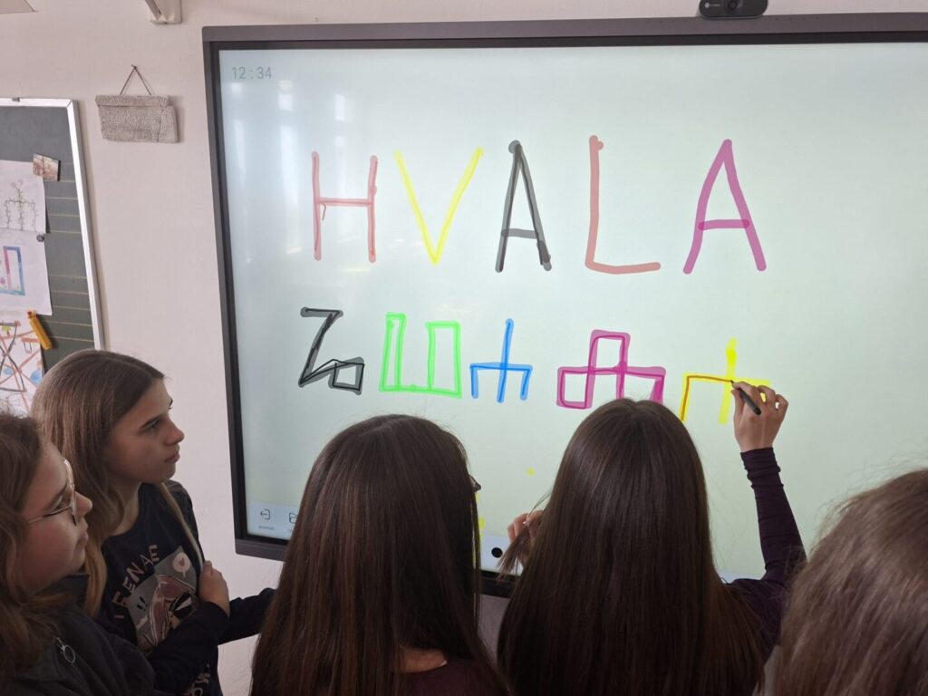 Naši partneri u eTwinning projektu iz OŠ braće Radića u Pakracu poslali su nam svoje prekrasne straničnike koje su izradili pod vodstvom učiteljice Maje Farkaš. Jako smo se razveselili njihovim radovima i zahvalili im se fotografijom i tekstom na našoj ploči ispisanim latinicom i glagoljicom.